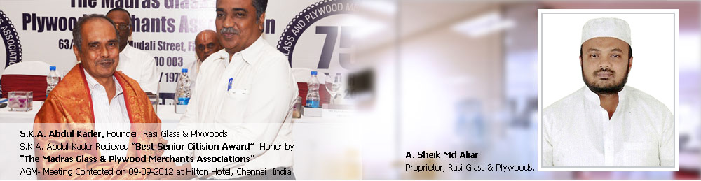 Rasi Glass & Plywoods established in the year 1977, is one of the leading wholesalers and distributors. Rasi Glass & Plywoods offer fine quality range of Glass, Processed Glass, Aluminum Composite Panel, Doors & Windows, Bathroom Cubicles, Glass Facades, Staircase Rolling Systems, Wood Laminates, and Plywood and different kinds of products, which are used in different industries. Our entire product range is purchased from the reliable and faithful vendors, who have wide industrial experience.